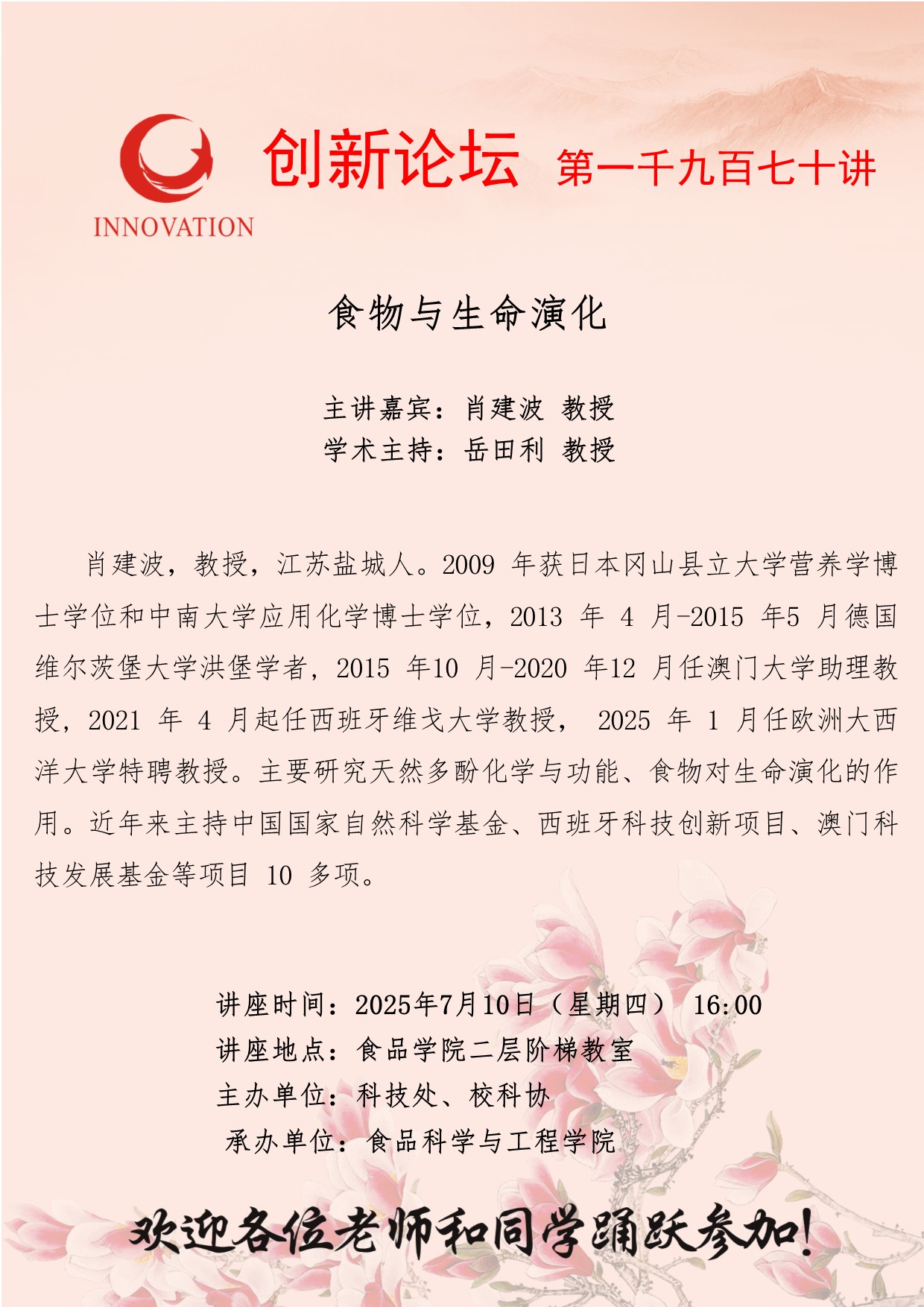 - 学术报告 食物与生命演化2025.07.10