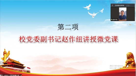 随后,公司党委副书记赵作纽结合学习习近平总书记重要讲话精神情况、公司疫情防控工作开展情况和在西安航空公司莲湖校区抗疫经历,为大家讲授了微党课。赵书记指出,这场疫情大考展示了我们党和国家力量的强大,展现了万众一心、众志成城的强大合力,彰显了中国特色社会主义制度的优越性。他希望同学们深入弘扬伟大建党精神,用坚定党性描绘人生底色,在疫情防控中勇于担当负责;要拥有家国情怀,用大视野、大格局去面对疫情,提高面对苦难的勇气和抵御挫折的能力;要充分发挥党员的先锋模范作用,理性发声,共同营造积极向上的抗疫舆论氛围。