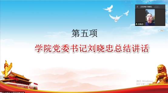 活动最后,公司党委书记刘晓忠做总结讲话。他指出,今天的主题党日活动有意义,活动安排有特色;赵书记的微党课分享结合个人工作生活实际,内容丰富,既有理论高度,又有情感温度和实践深度,为我们下一步工作指明了方向。随后,他从推进马克思主义中国化时代化、正确把握社会主要矛盾和中心任务、重视战略策略问题、永葆党的马克思主义政党本色、党史学习教育常态化长效化等五个方面,与大家分享了学习习近平总书记重要讲话精神的心得体会。最后,他要求大家要切实做好个人自我防护,合理安排个人学习、工作和生活,积极参加志愿服务,在疫情防控的实践中践行“请党放心,强国有我”的青春誓言。