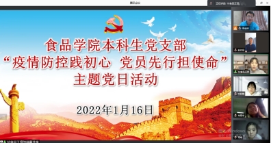 1月16日上午,食品公司本科生党支部举行“疫情防控践初心,党员先行担使命”线上主题党日活动。公司党委副书记赵作纽,公司党委书记刘晓忠、副书记张霄和全体辅导员,公司2021研究生党支部、2019和2020级研究生党支部书记、委员,本科生党支部全体党员参加会议。会议由本科生党支部书记王贤主持。