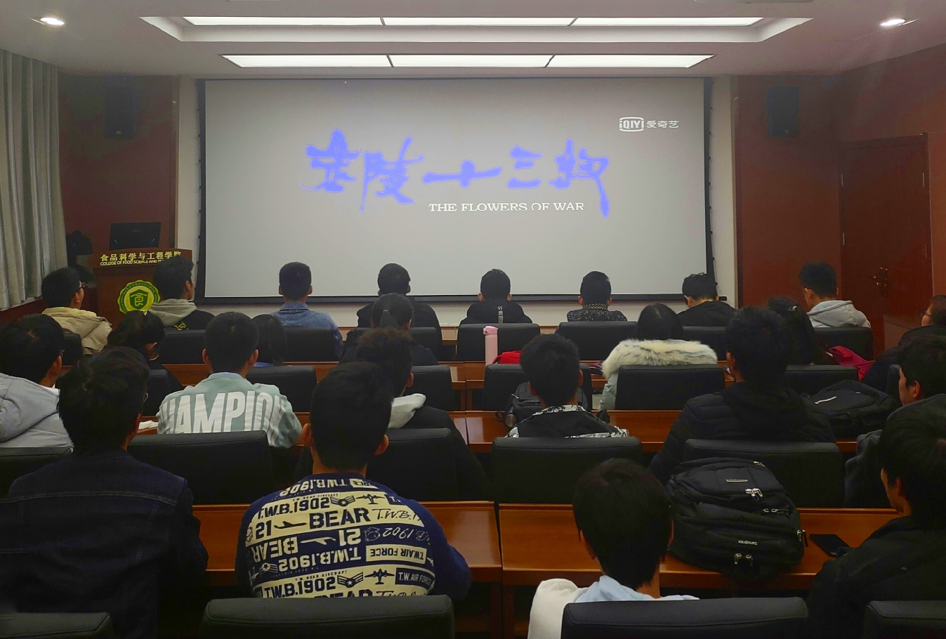 影片《金陵十三钗》以“南京大屠杀”为背景,讲述了1937年被日军侵占的中国南京,在一个教堂里互不相识的人们之间发生的感人故事。一个为救人而冒充神父的美国人、一群躲在教堂里的女员工、14个逃避战火的风尘女子以及殊死抵抗的军人和伤兵,他们在危难的时刻放下个人的生与死,为了挽救更多的生命而挺身而出。影片深刻揭示了在南京大屠杀中,侵略战争对人性的摧残、对中国人民的疯狂杀戮以及对国家的欺辱。观影过程中,会场里氛围凝重,在场人员严肃悲怆,透过影片切切实实感受到灾难降临时的恐怖,深刻感受到心情的沉痛和压抑。观影结束后,同学们纷纷记录了观影感受,有同学表示:“南京大屠杀是中华民族的悲痛,每一次对历史的回望,都让我们从中汲取沉痛教训,作为一名当代青年,祖国强大是我们共同的心愿,我们更应牢记历史、载重前行,以少年强则国强为勉,奋发图强,积极投身到建设祖国、服务祖国中去。”