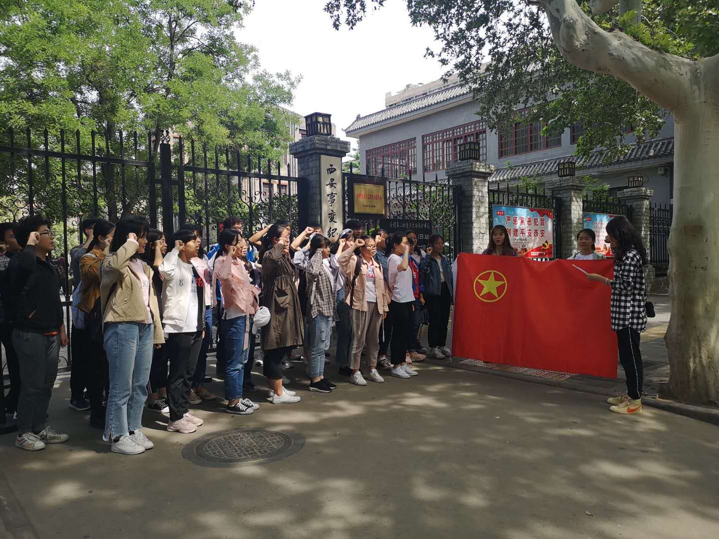 在八路军西安办事处革命旧址,同学们参观了当年的办公场所,观看了文件、证章、电台、书刊、新闻图片和烈士手稿、照片等革命文物。一份份珍贵的手稿、一幅幅翔实的历史照片,展示了中国革命所经历的光辉岁月,再现了革命先烈为了党和人民的利益抛头颅、洒热血,为共产主义献身的革命精神。