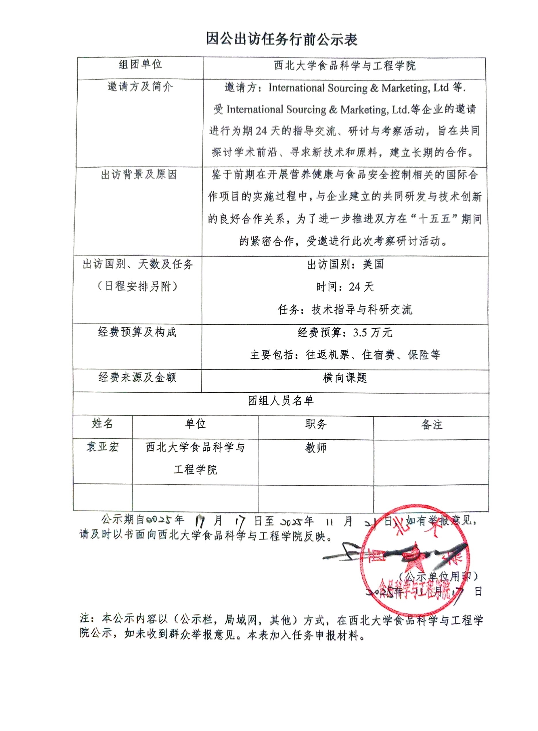 因公出访任务行前公示